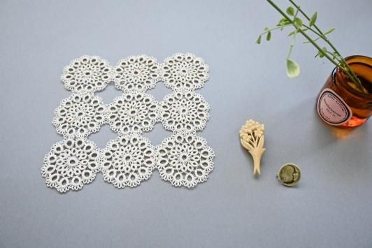 Size : W14.0cm×D14.0cm ヨーロッパをあちらこちら旅するなかで、技法・デザイン・年代ともに様々なファブリック小物が見つかるのがスウェーデン。 きっと家のなかで過ごす時間が長くなる冬、自然の光が恋しくて心が沈みそうなときに 室内を整えることが楽しみの一つである国ゆえかと思います。 また、刺繍を趣味とする人が多かったのでしょう、作ったけれど使わないまま...と思われる作品も本当に多く、 状態が良いものが見つかります。 そんなスウェーデンで見つけた刺繍の暮らしの手仕事や、愛らしいプリントのファブリックをご紹介します。 使用感はほとんどなく、ヴィンテージ品として良い状態のファブリックを集めました。 目立つようなシミ・ほつれのある商品については画像にて別途ご紹介しております。 画像以外に僅かなシミなどが見られる場合がございますので、どうぞご了承ください。