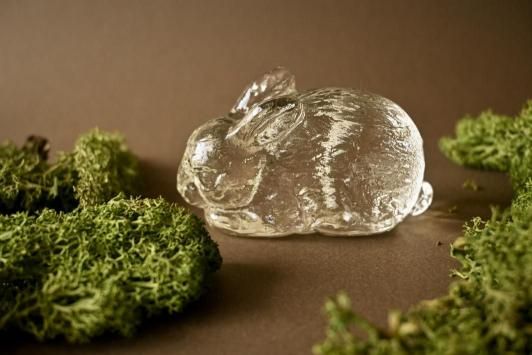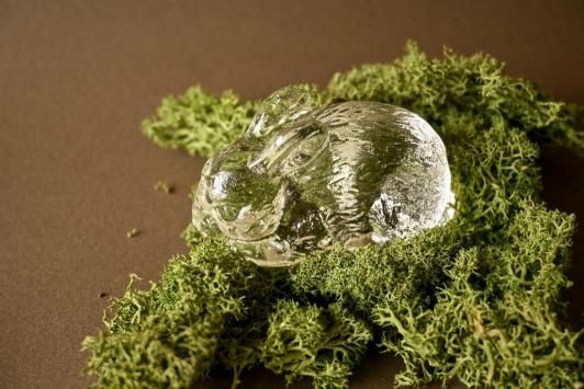 Size : H4.9cm×W8.8cm×D4.0cm ころんと座り込んだ姿がとっても可愛らしい、ガラスのウサギのオブジェです。 オブジェとしてはもちろん、ペーパーウェイトとしてもちょうど良いサイズ感と形です。 テーブルの上で散らかりがちな書類をまとめておくのにもぴったりです。 目立った傷かけのない、ヴィンテージ品として大変良い状態です。