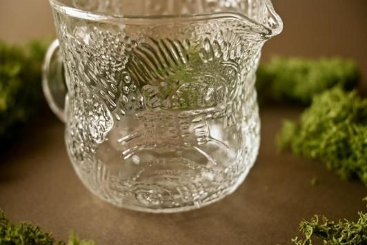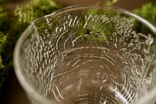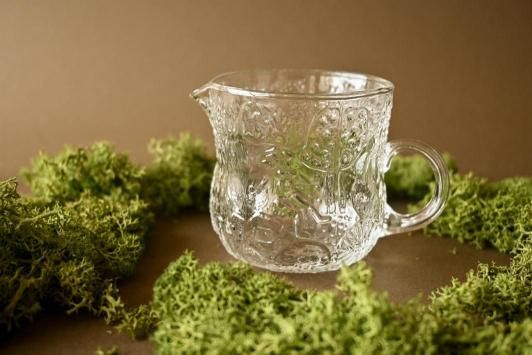Size : φ6.2cm×H6.7cm×W9.3cm×D7.0cm フィンランドを代表する(北欧を代表とする、と言っても過言ではないですね、きっと)ガラス作家・オイヴァ トイッカの「Fauna」シリーズのクリーマーです。 全面に凹凸で隠し絵のように表現された動物(人間も、動物である)たちの楽園に暮らしているかのような様子が素敵な作品です。 ガラスクリーマーは、ミルクを入れるのはもちろん、 ドレッシングポットのようにお使いいただくのもおすすめです。 目だった傷かけのない、ヴィンテージ品として大変良い状態です。