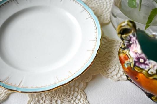 Size : φ16.0cm Gustavsberg [ Opak ] のプレートです。 これまで何度も訪れてきたスウェーデンですが、この「Opak」シリーズに出会ったのは近年になってから。 最初の1枚はたしかエーレブローで見つけたのですが、今回はストックホルムで見つけました。 水色と金彩、そして手書きによるフリルの模様がとても素敵なシリーズです。 状態についてはが画像にてご確認ください。 ご使用に問題となるような傷みはなく、アンティーク品として大変良い状態です。