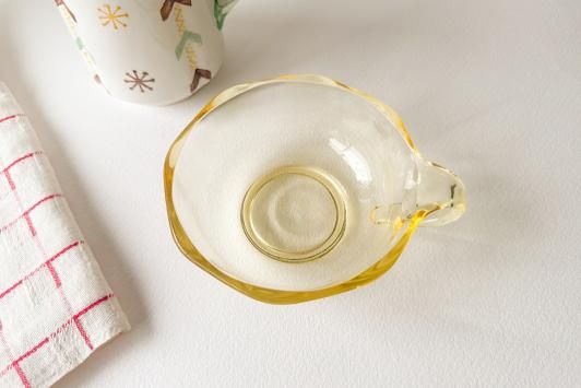 φ11.0cm×H4.3cm スウェーデンで見つけた、レモンイエローのガラスのボウルです。 フルーツを盛り付けたり、ヨーグルトやムースなども楽しめそうですね。 傷かけのない、ヴィンテージ品として大変良い状態です。