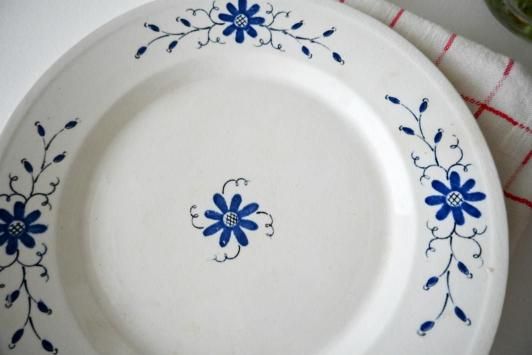 φ21.5cm Gustavsberg社 SIPPAのプレートです。 青いお花がとても可愛いく、気分が明るくなりそうですね。 パンやケーキ皿としても、お取り皿としてもどうぞ。 縁の部分に釉薬のかかっていない1.5mm程の突起部分がありますが、指を傷つける程ではないので安心して使用できます。 ごく薄いしみのようなものがありますが、傷かけのないとても良い状態です。