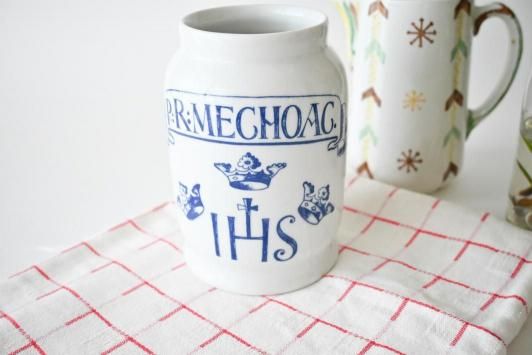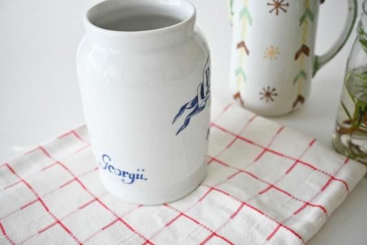 φ6.8cm×H12.8cm×W9.0cm スウェーデンの薬の博物館のミュージアムショップ用に作られた、 ロールストランドの陶器で作られたレプリカの薬瓶です。 カトラリースタンドのようにお使いいただくのもおすすめですし、 キッチンツールを立てたり、また花瓶のように飾っていただいても素敵だと思います。 未使用品の大変良い状態です。
