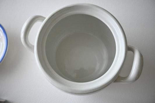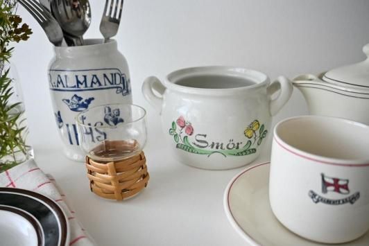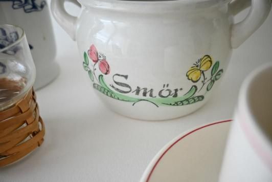φ11.5cm×H9.0cm×W16.4cm×D13.0cm Smor(oの上には発音記号のウームラウト)はスウェーデン語で「バター」のこと。 つまりこちらはバターポットです。 どれだけたくさんのバターを毎日消費する食文化なのか...と日本との大きな違いを感じるデザイン。 お花を生けたり、小物入れとしてお使いいただくのがおすすめです。 状態については、画像にてご確認ください。