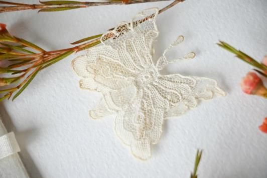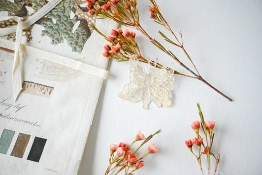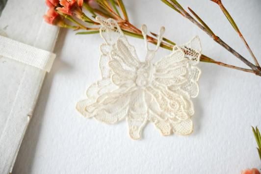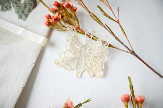 Size : H4.3cm×W4.5cm 小さなアンティークのバタフライをモチーフにしたレースです。 可愛らしさがギュッと詰まっているモチーフレースは、 お洋服の飾りに、ハンカチーフやポーチのアクセントにと「何を作ろう?」と楽しい悩みをもたらせるだけでなく、 眺めるためだけに集めたくなるような存在。 縁の部分にシミが見られますが、ほつれ等はない良い状態です。