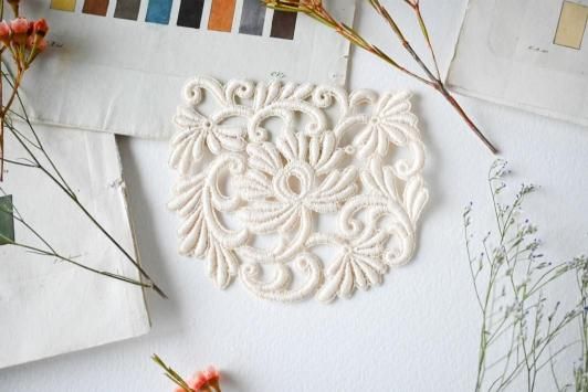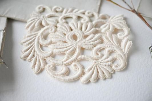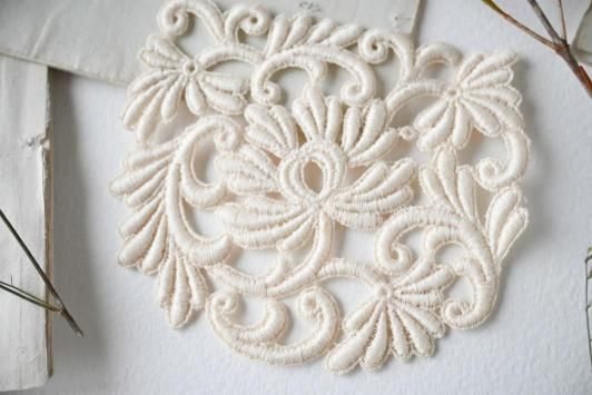 Size : H8.0cm×W9.2cm 美しいアンティークのレースピースです。 セーターやカーディガンのリメイク等、 手芸などでも楽しんでいただけると思います。 こちらの商品は3枚のご用意があります。 デットストック品の傷ほつれのない大変良い状態です。