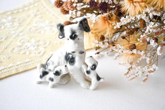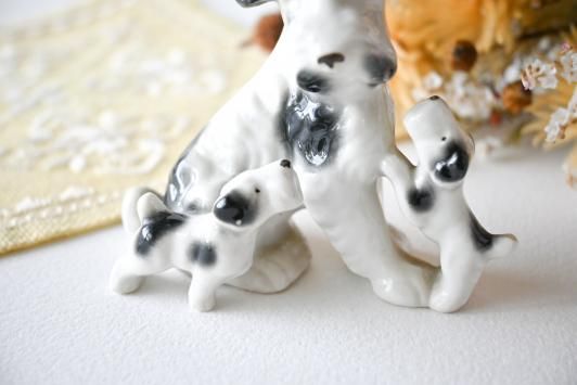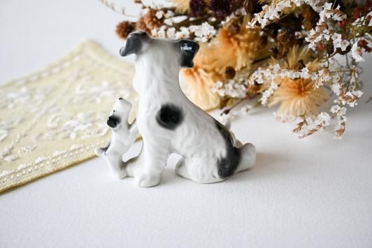 こちらは白と黒のブチのテリアの親子のフィギュリンです。