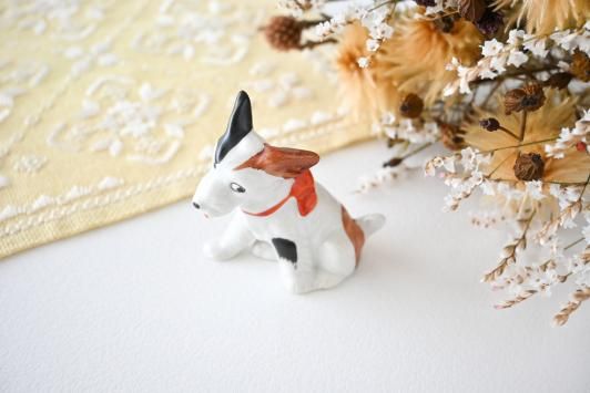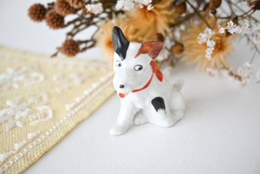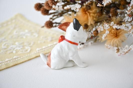 TOP > interior > 赤いリボンのブチ犬のフィギュリン