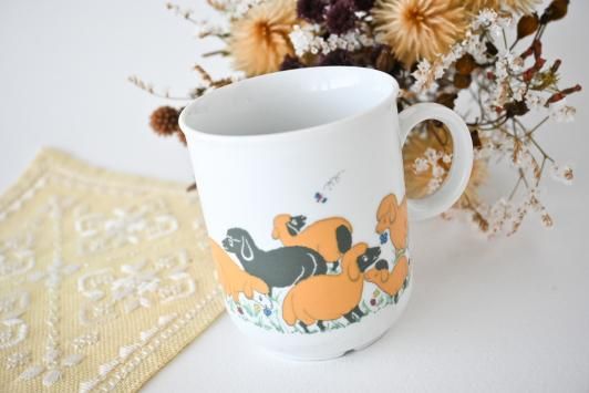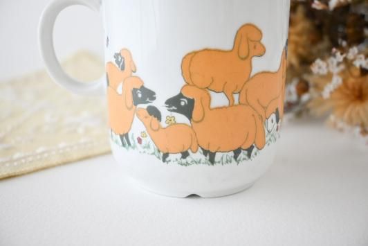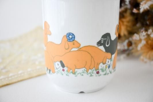 Size : H7.7cm×W10.5cm 初夏のスウェーデンを3週間ほど旅しながら、さまざまな「おしゃべりが聞こえてきそうなオブジェ」を集めました。 こちらはもうすぐ帰国だぞ、という日曜日、ヒョートリエットの蚤の市で見つけた 羊たちが集まって思い思いに過ごしている絵柄のマグカップ。 どの子も表情や髪型(ツノ型??)が色々と違っていて、 ある子は蝶々を眺めていたり、なんだか賑やかな声が聞こえてきそうな一品です。 在庫がご紹介時点で3点あり、どちらもプリントの部分にスレが見られます。 代表的な状態を画像にてご紹介しておりますので、どうぞご覧ください。 今回ご紹介する品々は、いつか誰かが部屋のどこかで、あるいはプレゼントに、と手にして飾っていたものばかり。 経年や人の手を一度介したことによる「こなれた感じ」があるものばかりですが、 目立った傷や欠けはありません。 画像にてより詳細な状態をご確認ください。