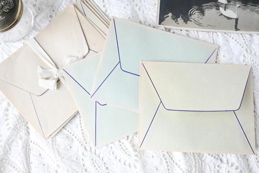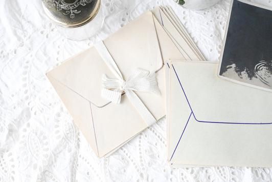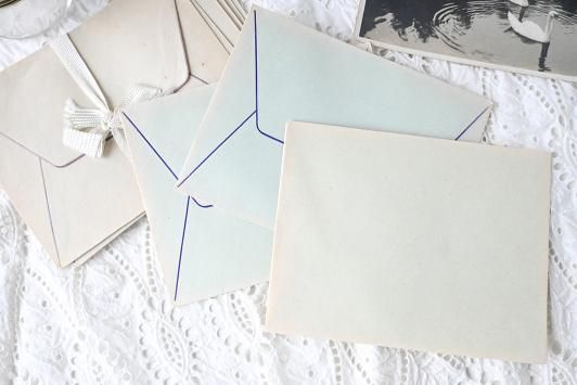 Size : H9.6cm×W12.2cm エストニアで見つけた、アンティークの古い封筒のセットです。 もうすっかり陽に焼けて色も変わっている封筒もありますが、一枚一枚に佇まいの美しさを感じて、 大切な誰かへ手紙を送るときに、とっておきの封筒として大事に使いたい、そんな雰囲気。 糊が湿気でややくっついているものもありますが、やさしく剥がしてあげると破れることなくお使いいただけます。 状態につきましては画像にてご確認くださいませ。