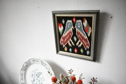 スウェーデンの伝統工芸のひとつでもある「フレミッシュ織り」の小ぶりな壁飾りです。