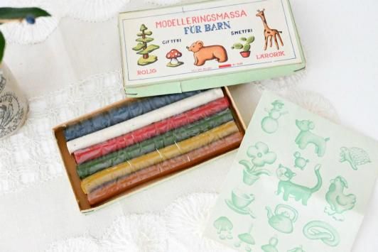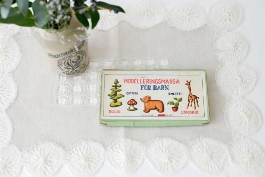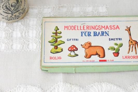 スウェーデンの子ども用粘土「Modelleringsmassa För Barn」の美しいパッケージがそのままに残った小品です。
