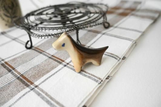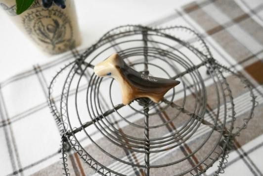 手のひらにすっぽり収まるほどの、小さな陶製の犬。
