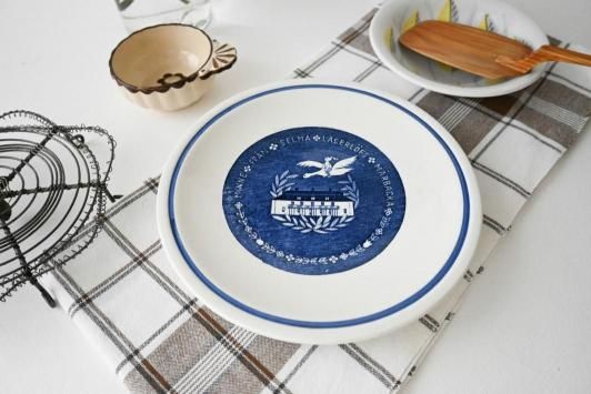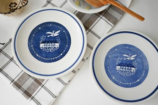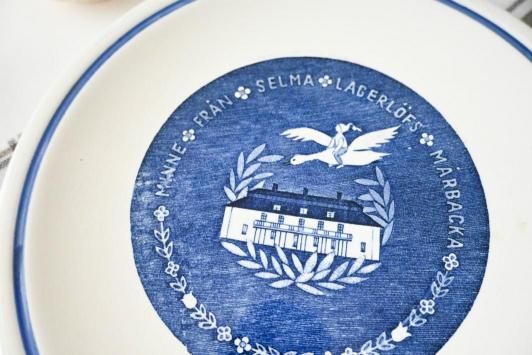 Size : φ19.7cm スウェーデンの作家セルマ・ラーゲルレーヴを記念して作られたプレート。 中央には彼女の生家「Mårbacka」と白鳥が描かれています。 深いコバルトブルーが印象的で、壁掛けとしても映えるデザイン。 2枚ともわずかに色の濃淡や転写のズレがあり、それぞれの個体差に味があります。 経年による小さなスレはありますが、つややかさを保ったきれいな状態です。