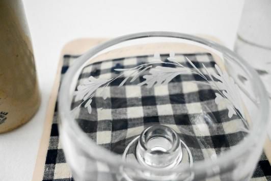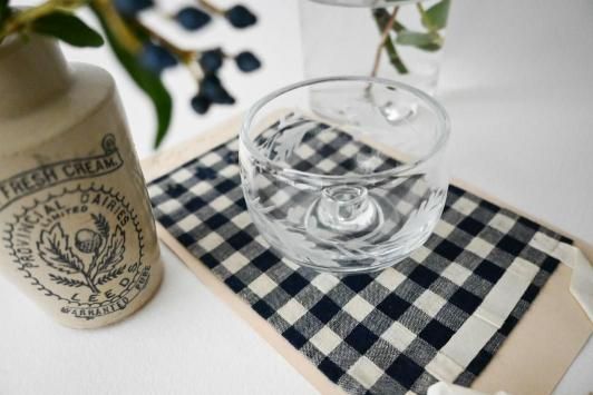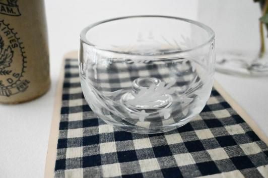 Size : ホルダー部分φ1.0cm×上部φ8.0cm×H5.5cm どんぐりと葉の模様が繊細にカットされた小さなガラスのキャンドルホルダー。 透明度が高く、灯りをともすと模様が柔らかく浮かび上がります。 直径約1cmのキャンドルが使用可能です。 底面にわずかな擦り跡がありますが、欠けはありません。 小花を一輪挿してミニベースとしてもお楽しみいただけます。