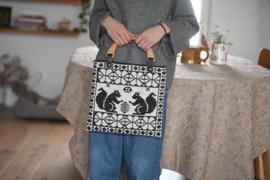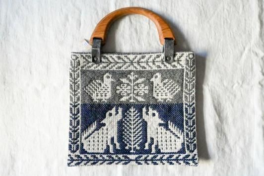 Size(cm) : 30x26 ★4枚目の画像は実際に持った時のイメージ画像です 【 ヤノフ村の手織物 / 送料について 】 ポーランドの東北部ポドラシェ県のヤノフ村で18世紀から受け継がれてきた手織りの織物です。 二重織りという技法で織られている、図案のない絵織の織物で、織手たちが自由に絵を描くように、伝統的な幾何学模様から、村の生活や森の動物たちなどを織り出します。 今回ご紹介している全ての作品はヤノフ村や近郊に暮らす織り手さんたちによって一枚一枚手織られた作品です。 手染めによって染められた羊毛の美しい色合いとそこにあしらわれた様々なモチーフたち。 モチーフには、ポーランドの森の動物たちや、伝統的な花や木々の文様、優しく素朴な村の生活がいきいきと織り込まれています。 ひとつひとつ長い時間をかけて仕上げられた織物には、織り手さんそれぞれの特徴や風合いなどが垣間見え、見比べてみるのも楽しみの1つ。 現在ではごくわずか数人という、貴重な織り手たちによって生まれた美しい作品の数々をどうぞお楽しみ下さい。 ------ ★ヤノフ村の手織物展にてご購入の作品につきましては、 サイズやお届け先によって送料を800円以上実費にて頂戴いたします。 ご了承くださいます様お願いいたします。 お買い物の際は自動で800円の送料が表示されますが、後ほど受注案内のメールをお送りする際に内容を変更してお送りいたします。 一例として 北海道/1100円(60サイズ)から1940円(120サイズ) 東北・北関東・甲信・北陸・東海/800円(60サイズ)から1485円(120サイズ) 近畿・中国/880円(60サイズ)から1710円(120サイズ) 四国・九州/1100円(60サイズ)から1940円(120サイズ) 沖縄/1100円(60サイズ)から2000円(120サイズ)