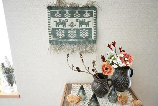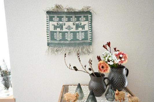 手染めによって染められた羊毛の美しい色合いとそこにあしらわれた様々なモチーフたち。