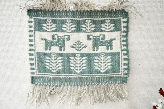 二重織りという技法で織られている、図案のない絵織の織物で、織手たちが自由に絵を描くように、伝統的な幾何学模様から、村の生活や森の動物たちなどを織り出します。
